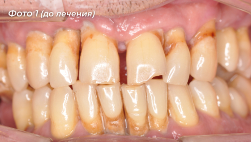 Проблема: пациент обратился с жалобами на подвижность всех зубов на верхней и нижней челюстях, жевать ими было очень сложно (Фото 1, 2).