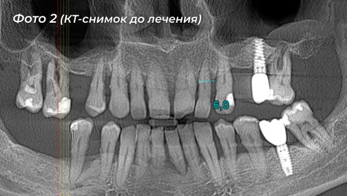 Решение: сохранить зубы, к сожалению, было уже невозможно, так как оба зубных ряда качались. Совместно хирург Павлова Ольга Юрьевна и ортопед Калинин Антон Сергеевич разработали поэтапный план лечения, направленный на восстановление полноценной жевательной функции и эстетики улыбки.
