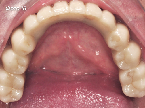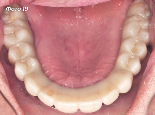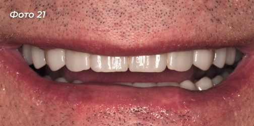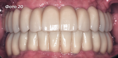 Установлены постоянные конструкции на верхней и нижней челюстях (Фото 18, 19, 20, 21).