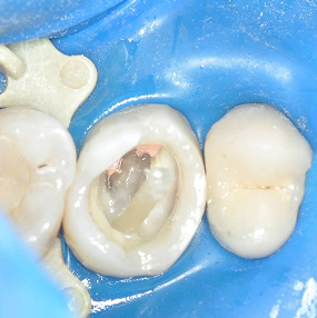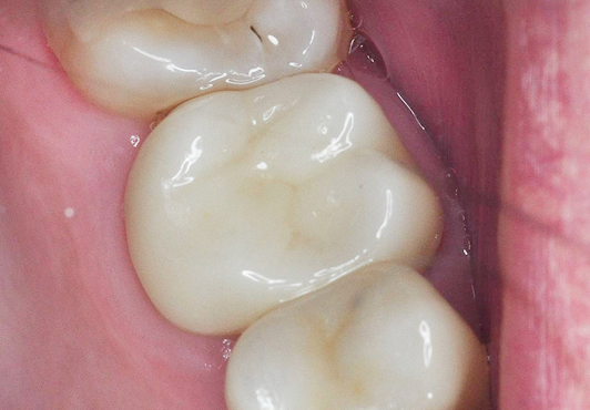Результат: После проведённого эндодонтического лечения болевые ощущения при жевании устранены, дискомфорт и давление в области гайморовой пазухи исчезли, восстановилось нормальное носовое дыхание. Зуб сохранён, его функция восстановлена. После фиксации коронки полностью восстановлены анатомическая форма и жевательная эффективность, нагрузка распределяется корректно.